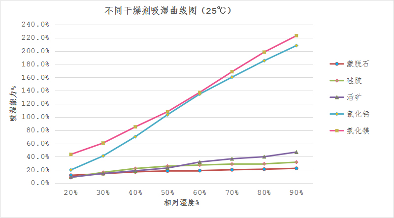 各类干燥剂吸湿对比图